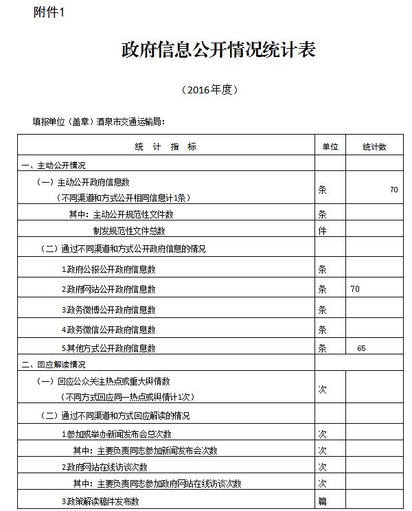 1. 主动公开政府信息情况。2016年,我局通过交通运输局门户网站主动公开政府信息70条。通过其他方式公开政府信息65条,主要涉及招投标公示公告、财务预决算公示等内容。