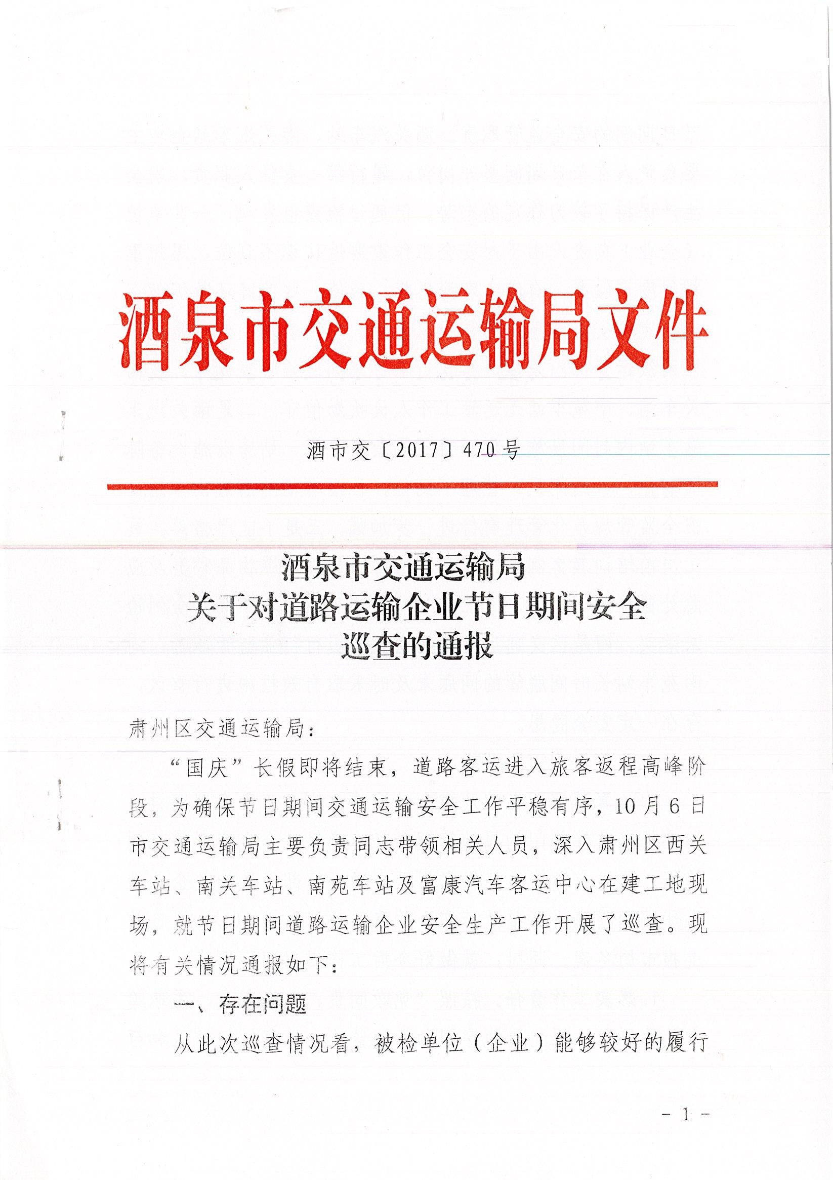 关于对道路运输企业节日期间安全巡查的通报