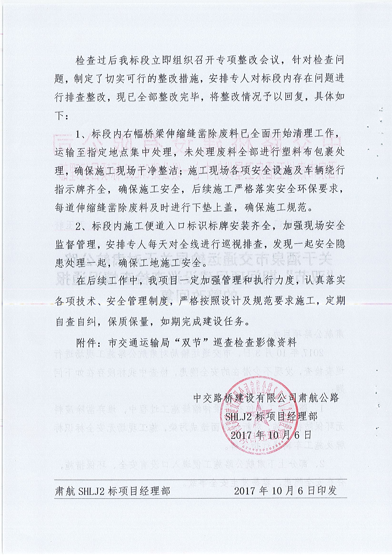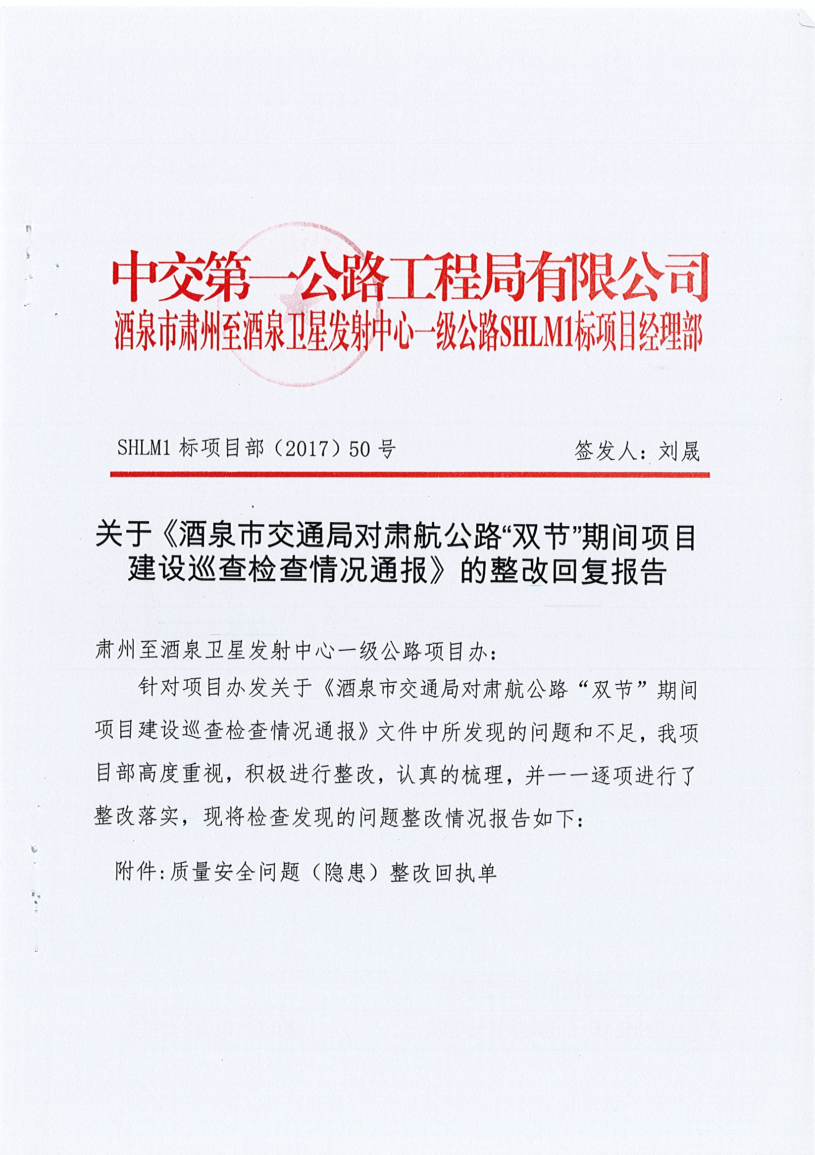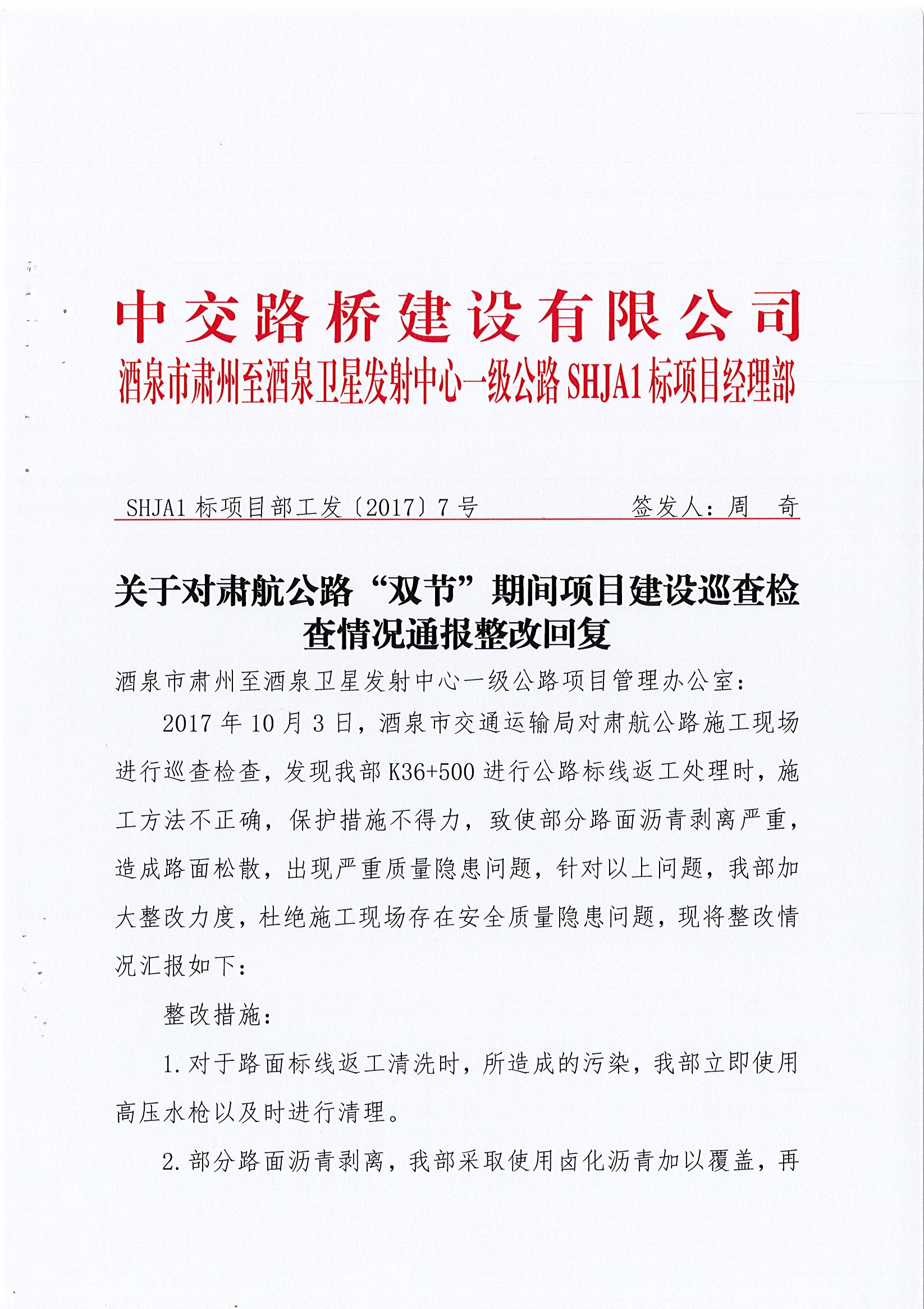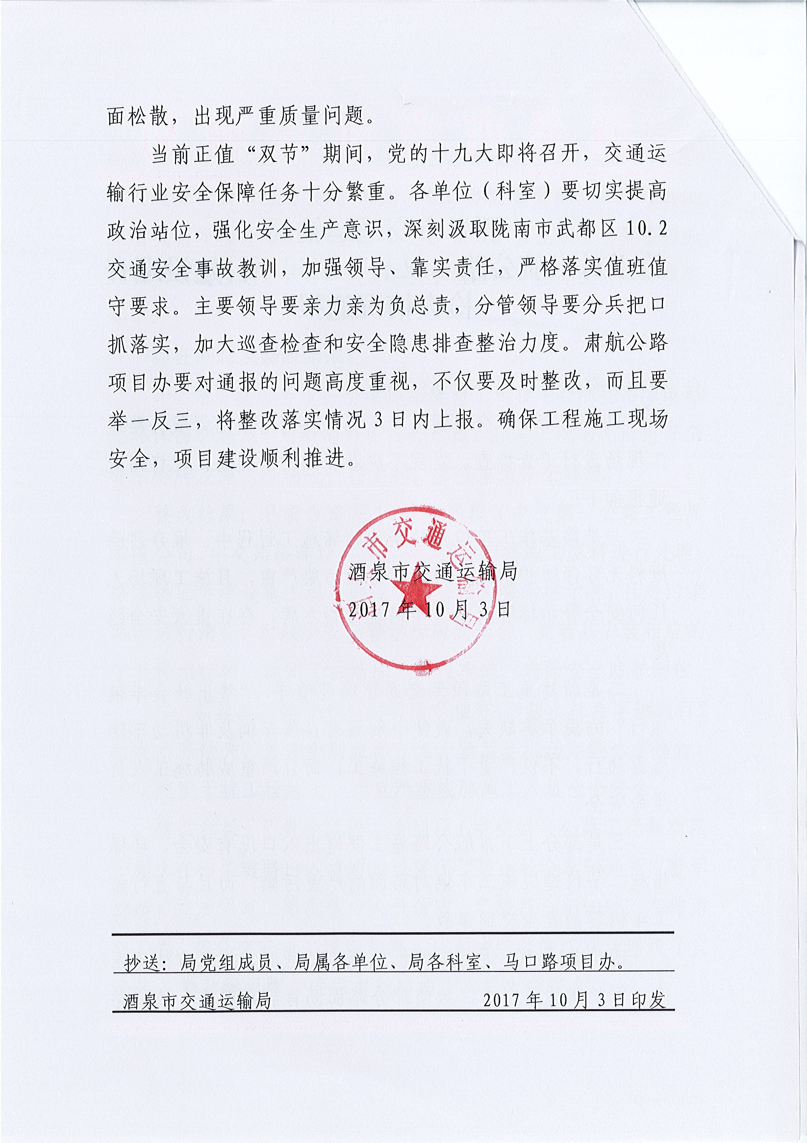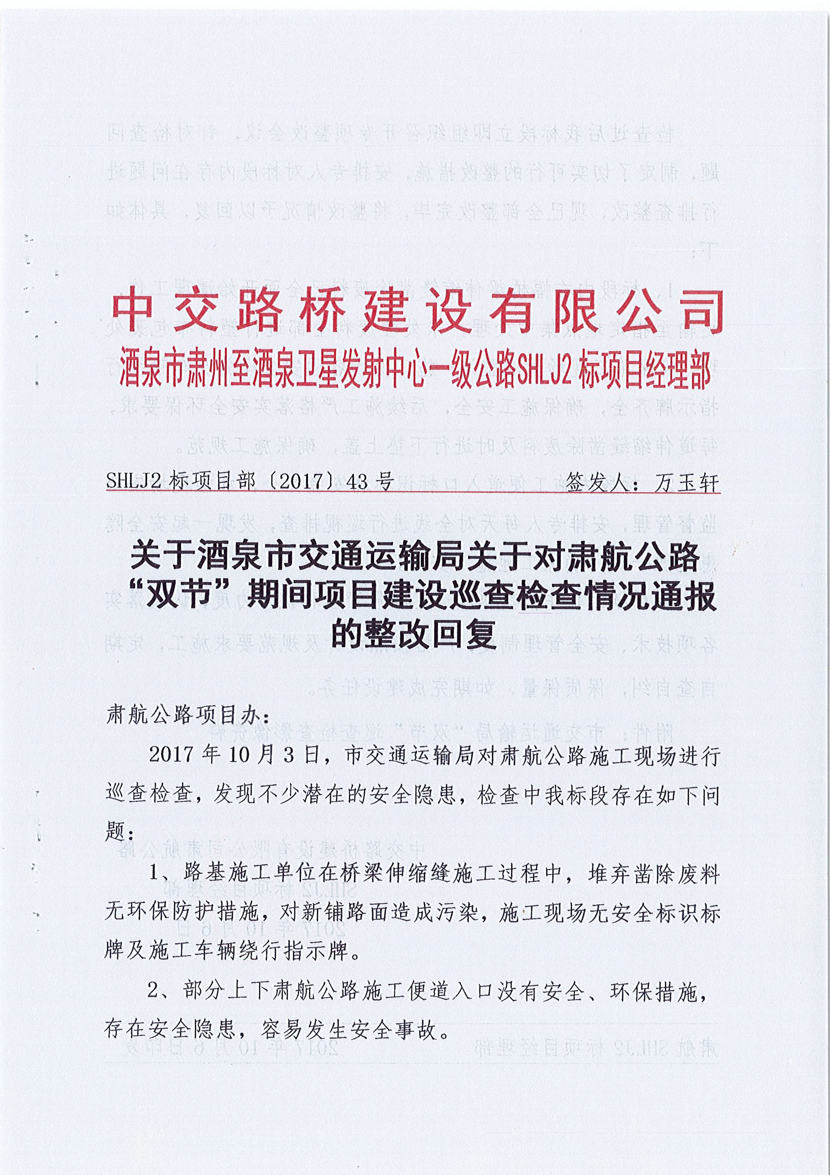 关于对肃航公路“双节”期间项目建设巡查检查情况通报